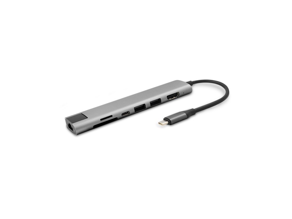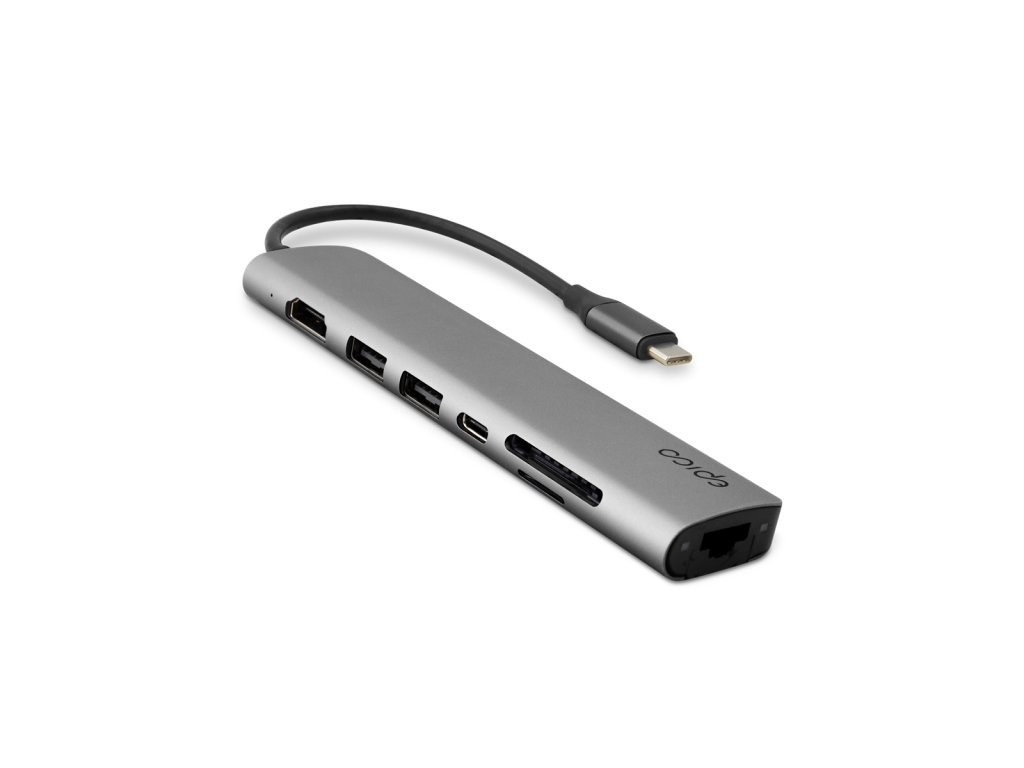 Ultimátní 7v1 hub pro bezproblémovou konektivitu7 základních portů: Obsahuje HDMI, USB-C Power Delivery, dva USB-A porty, Ethernet port a sloty na SD i MicroSD karty.
