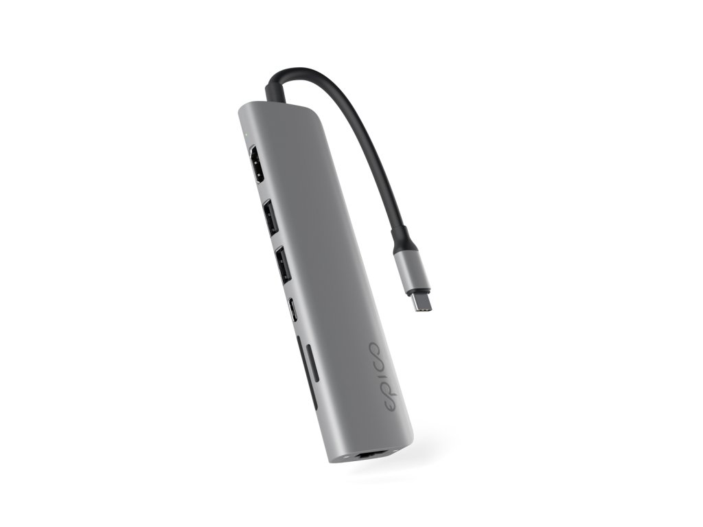 Epico 7v1 Multimedi Hub 8K s USB-C konekt. - šedá