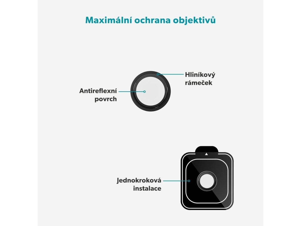 Maximální ochrana objektivů s hliníkovými rámečkyDopřejte svému iPhonu dokonalou ochranu fotoaparátu díky Aluminium Lens Protectors. Tato ochrana objektivů s hliníkovými rámečky účinně chrání objektivy před poškrábáním a nárazy, takže se nemusíte obávat opotřebení z každodenního používání. Speciální antireflexní povrch zajišťuje, že vaše fotografie i videa budou vždy ostré a kvalitní za všech podmínek.