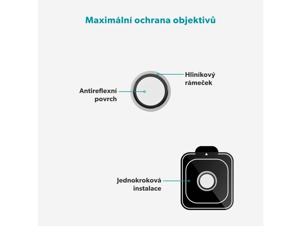 Maximální ochrana objektivů s hliníkovými rámečkyDopřejte svému iPhonu dokonalou ochranu fotoaparátu díky Aluminium Lens Protectors. Tato ochrana objektivů s hliníkovými rámečky účinně chrání objektivy před poškrábáním a nárazy, takže se nemusíte obávat opotřebení z každodenního používání. Speciální antireflexní povrch zajišťuje, že vaše fotografie i videa budou vždy ostré a kvalitní za všech podmínek.