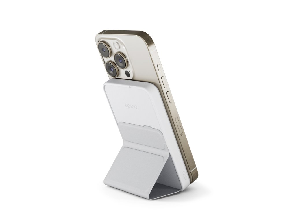 Epico Mag+ Stand Power Bank 7 000mAh je všestranná powerbanka, která nejen udrží vaše zařízení nabitá, ale slouží také jako funkční stojánek. Powerbanka je kompatibilní s MagSafe a poskytuje bezdrátový výstup až 15 W (7,5 W pro iPhone) a USB-C výstup s 20W Power Delivery pro standardní kabelové nabíjení. Powerbanku můžete nabíjet buď přes vstup USB-C, nebo Lightning. Zadní strana powerbanky slouží jako nastavitelný stojánek, takže ji můžete umístit do preferovaného úhlu pro hands-free FaceTime nebo sledování videí. Součástí balení je kabel USB-C na USB-C.Kapacita baterie: 7000 mAh (26.95 Wh), USB-C vstup: 5 V/2,4A, 9 V/2,22 A, Lightning vstup: 5 V/2 A, 9 V/2 A, USB-C výstup: 5 V/3 A, 9 V/2,22 A, 12 V/1,67 A (20 W max.), Bezdrátový výstup: 7,5 W/10 W/15 W, Celkový bezdrátový výstup: 15 W, Materiál: ABS plast, pogumování, Rozměry: 67×106×13 mm, Hmotnost: 169 g