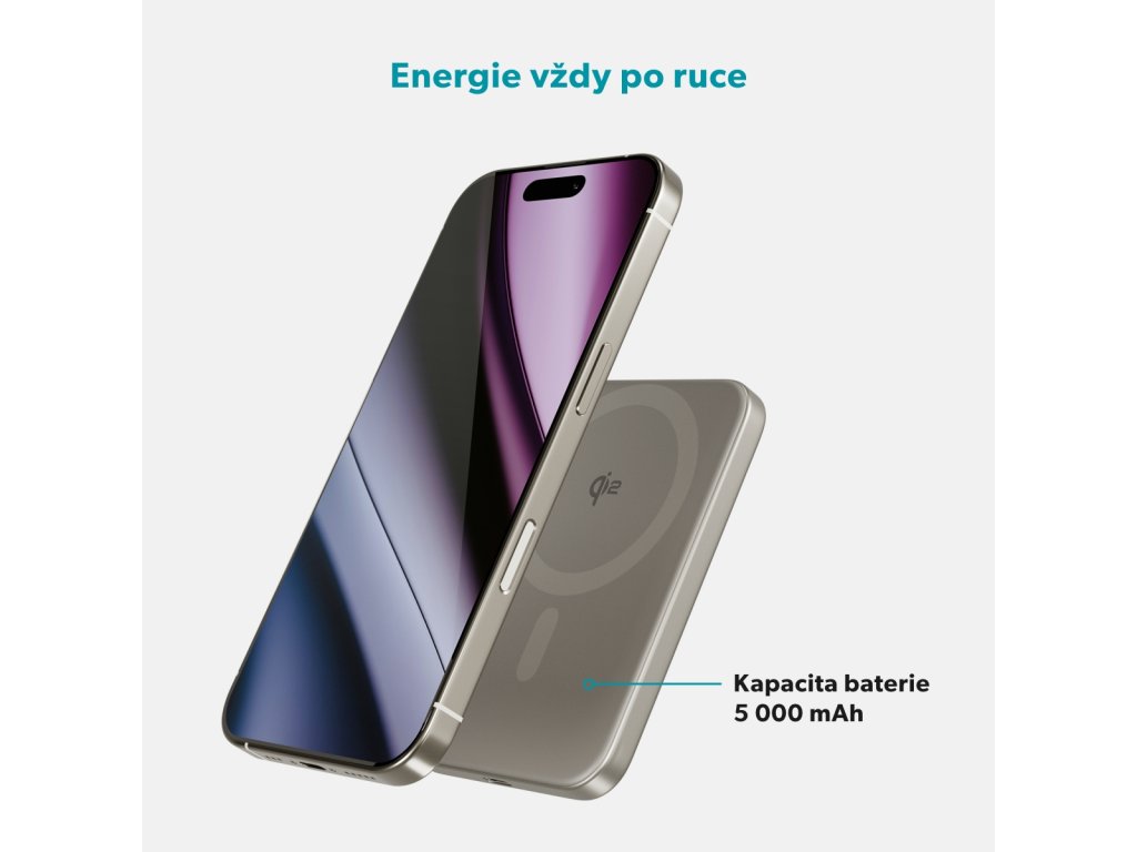 Kapacita 5 000 mAh: Stačí na jedno plné nabití iPhonu 16 Pro.*