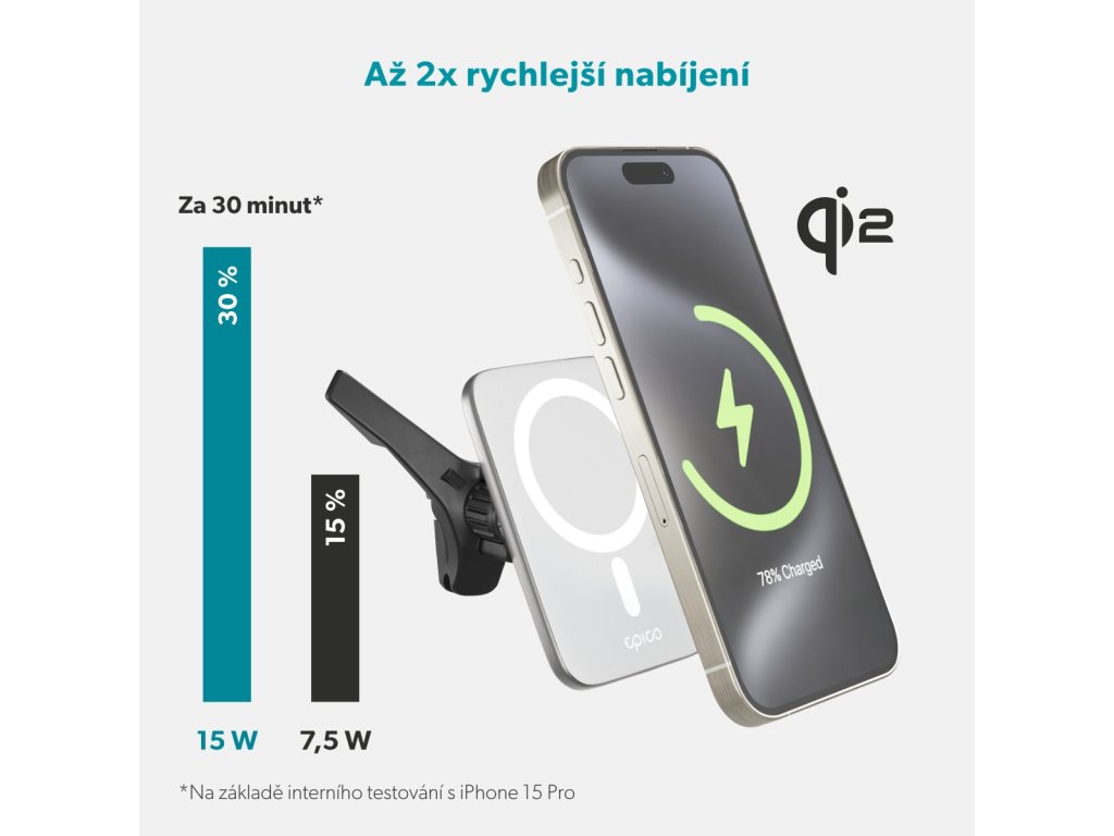 Qi2 držák na mobilní telefon - do auta, magnetický, uchycení do ventilace, výkon 15 W pro iPhone i Android, barva bílá/stříbrná.Až 2x rychlejší nabíjení s Qi2 Kompatibilita s MagSafe & Qi2: Bezproblémová kompatibilita s MagSafe & Qi2 umožňuje snadné bezdrátové nabíjení. Silný magnet: Zajišťuje bezpečné uchycení vašeho smartphonu. Qi2 bezdrátový výstup: Efektivní bezdrátové nabíjení s maximálním výkonem 15 W, až 2x rychlejší než standardní Qi nabíjení. Hliníkové tělo: Prémiové a odolné hliníkové tělo zabraňuje přehřívání. Ultratenký design: Pouze 7 mm tenká nabíječka nabízí velkou kontaktní. Flexibilní polohování: Po upevnění do větrací mřížky snadno nastavíte polohu pomocí kulového kloubu.