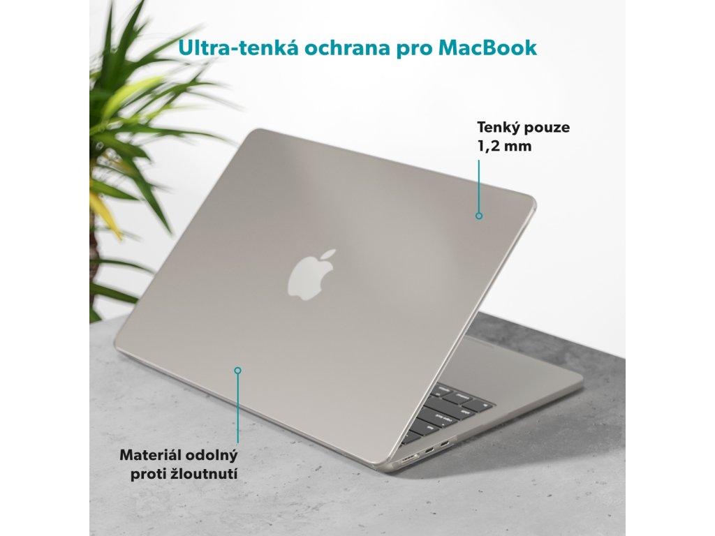 Pouzdro na notebook, ultra-tenké, materiál polykarbonát, protiskluzové gumové nožičky, barva matná transparentní.Ultra-tenká ochrana MacBooku: S tloušťkou pouhých 1,2 mm ochrání váš MacBook, aniž by přidával na objemu.
