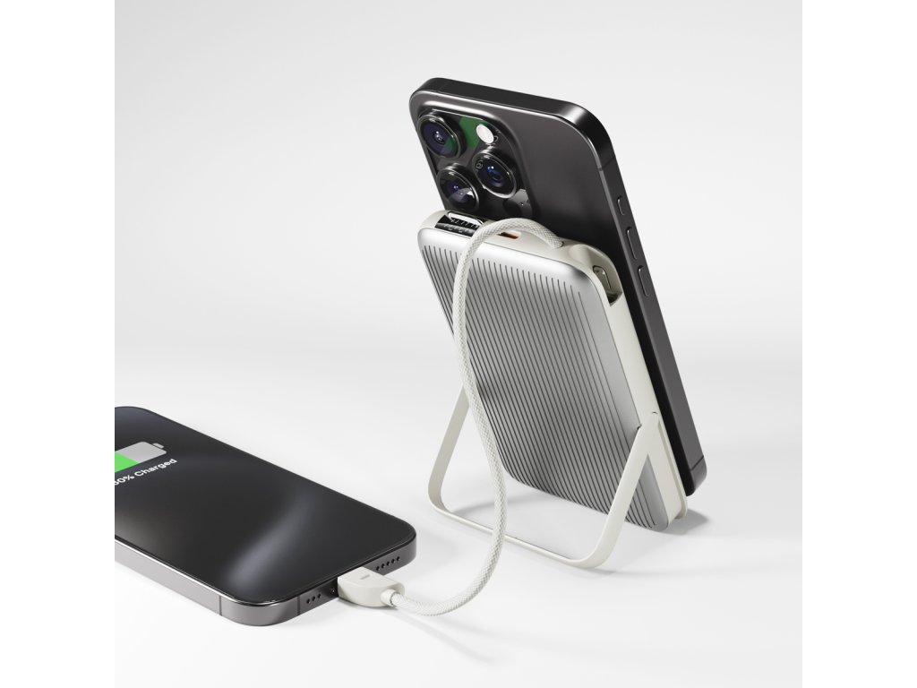 Díky více výstupům můžete současně nabíjet až tři zařízení najednou – skrze integrovaný USB-C kabel (22,5 W), USB-C port (22,5 W) a bezdrátový výstup (až 15 W). Tato powerbanka je vybavena opleteným USB-C kabelem, který slouží k oboustrannému nabíjení a také jako odolné poutko. Vestavěný displej vám poskytne perfektní přehled o zbývající kapacitě na první pohled. Lehký a kompaktní design navíc umožňuje snadné přenášení, takže ji můžete vzít kamkoliv s sebou.