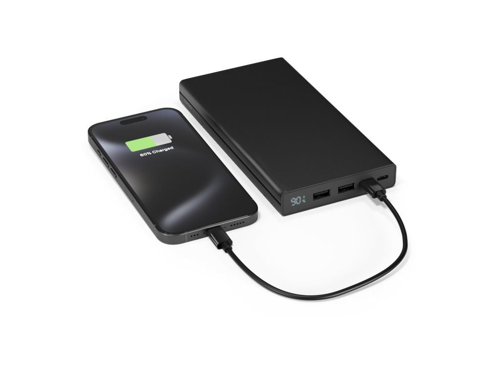 Tělo powerbanky je vyrobeno z odolného hliníku, který zaujme elegantním designem a zároveň efektivně odvádí teplo. Praktický LED displej vám poskytne přehled o zbývající kapacitě baterie, takže vždy víte, kolik energie máte k dispozici. Díky dvěma USB-C a dvěma USB-A portům můžete pohodlně nabíjet více zařízení současně. Součástí balení je navíc USB-C kabel o délce 50 cm, který zajistí snadné připojení.