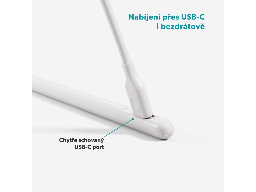 UltraPen Stylus vyniká až 8hodinovou výdrží na jedno nabití a automatickým uspáním po 10 minutách nečinnosti, což šetří energii, když zrovna netvoříte. Nabíjet jej můžete pohodlně přes USB-C (konektor je chytře ukrytý pod krytkou) nebo bezdrátově*. Indikační LED kroužek vás jemně informuje o stavu stylusu, zatímco bezproblémové Bluetooth párování umožňuje okamžité připojení bez zdlouhavého nastavování. Součástí balení je také náhradní hrot, který je kompatibilní s Apple Pencil (nikoli naopak), takže můžete tvořit bez přerušení.