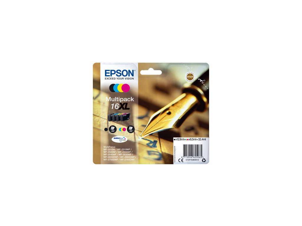 Inkoust Epson DURABrite Ultra je perfektní pro tisk firemních dokumentů v laserové kvalitě. Systém pigmentových inkoustů zajišťuje, že vytištěné dokumenty jsou odolné vůči vodě, rozmazání a zvýrazňovačům a díky rychlému schnutí se tyto inkousty skvěle hodí pro oboustranný tisk.Barva: Black/cyan/magenta/yellow