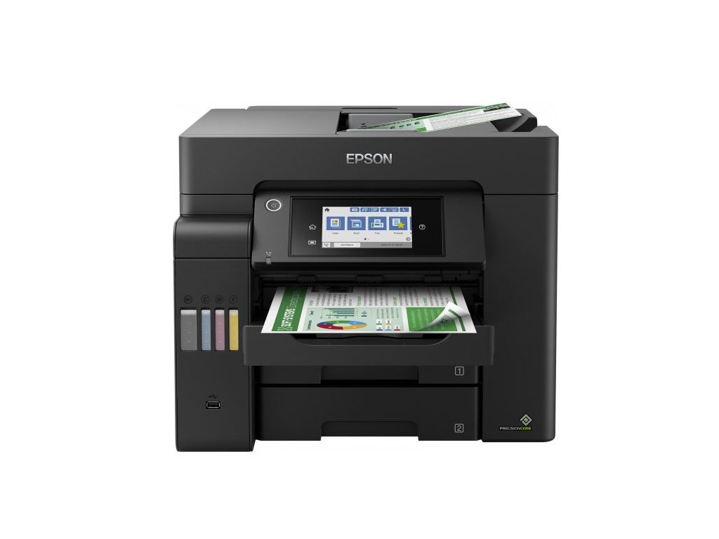 Tato rychlá, vysokokapacitní multifunkční tiskárna EcoTank přináší nízké náklady na stránku spolu s minimální nutností vašich zásahů, takže šetří váš čas i peníze.S touto snadno použitelnou tiskárnou EcoTank můžete tisknout, skenovat, kopírovat a faxovat dokumenty při opravdu výjimečně nízkých nákladech na jednu stránku. Veškeré úlohy lze zvládat rychle díky vysoké rychlosti tisku a skenování, dvěma předním zásobníkům na 250 listů, zadnímu podavači na 50 listů a automatickému podavači dokumentů o kapacitě 50 listů. Díky funkcím mobilního tisku, Ethernet připojení a dotykovému LCD displeji s úhlopříčkou 10,9 cm můžete tisknout tak, jak právě potřebujete.