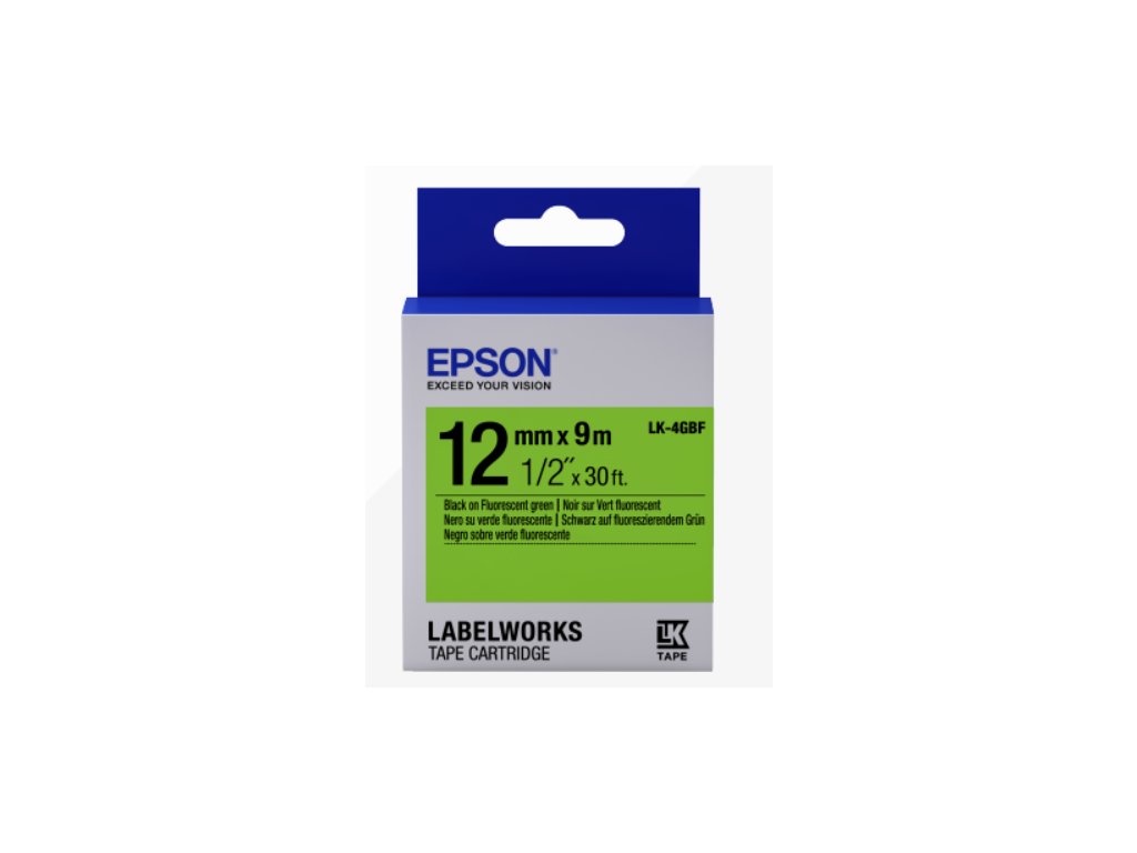 Epson Label Cartridge Fluorescent LK-4GBF Black/Green 12mm (9m)