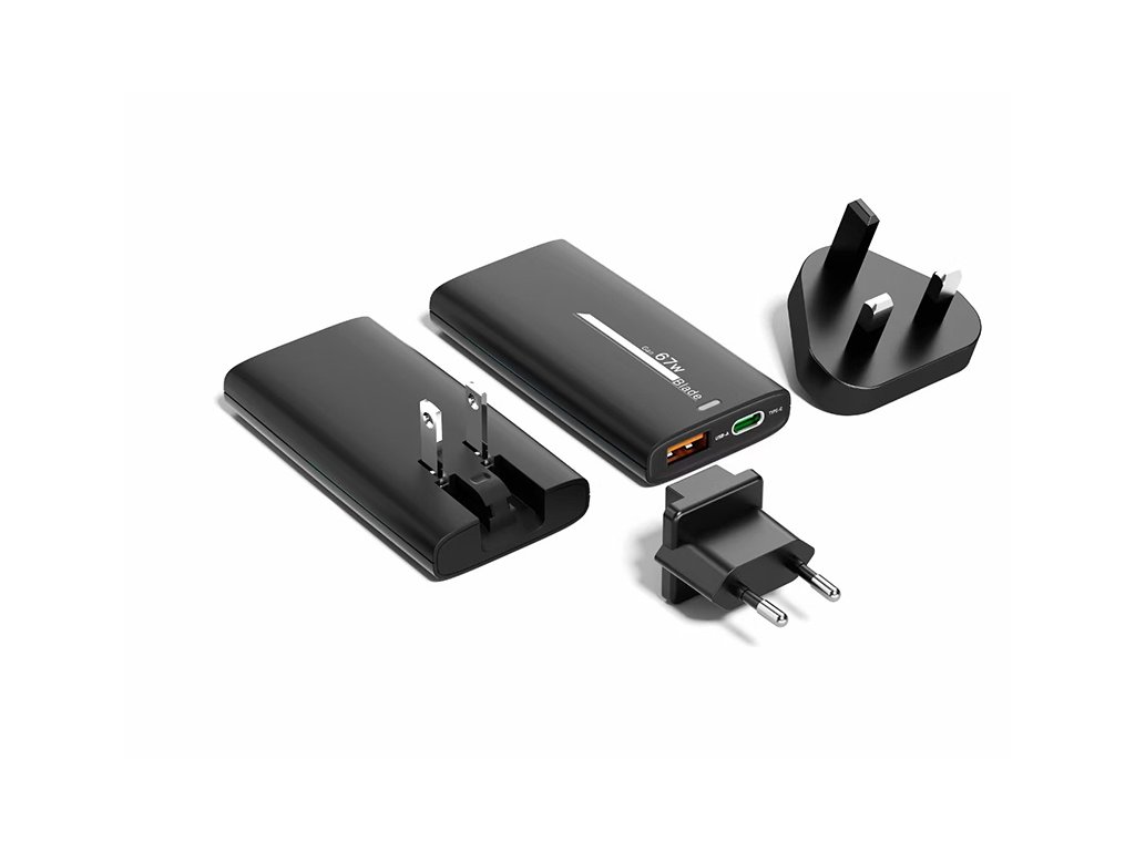Adaptér ER POWER s výkonem 67W je poháněn technologií GaN. GaN je zkratka pro nitrid galitý, tato sloučenina slouží jako alternativa za křemíkové polovodiče. Hlavní výhody GaN technologie jsou, že polovodiče vytvořené z nitridu galitého vydrží mnohem vyšší frekvence než běžně používané křemíkové polovodiče, dále pak menší rozměry a několikanásobně vyšší efektivita bez přehřívání.Nabíječka disponuje portem USB-C a portem USB-A v balení navíc naleznete vyměnitelné UK a EU vidlice, které v případě potřeby umístíte na US vidlici, která je v nabíječce integrována. Díky tomu máte možnost nabíjet dvě zařízení a to téměř kdekoliv na světě.