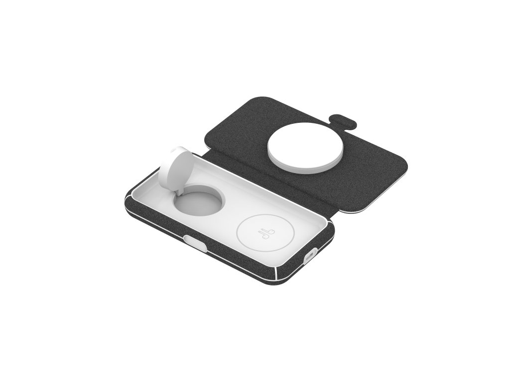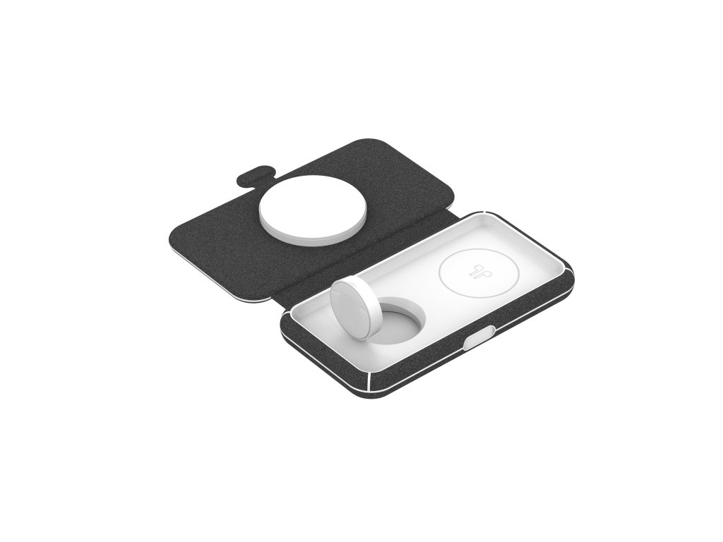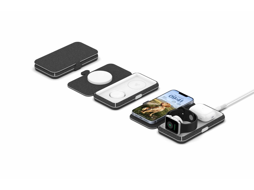 Skládací nabíječka s nabíjecí plochou pro smartphone, MFW rychlo-nabíjecím modulem pro Apple Watch a bezdrátovou nabíjecí plochou pro kompatibilní sluchátka. Součástí balení je USB-C/USB-C kabel v délce 2 metry. Kompatibilní s MagSafe a Qi, rychlo-nabíjecí MFW certifikovaný modul pro Apple Watch a bezdrátovou nabíjecí plochu pro kompatibilní sluchátka. Díky tomu můžete pohodlně dobíjet tři zařízení současně. Barva: černáDodatočné parametre