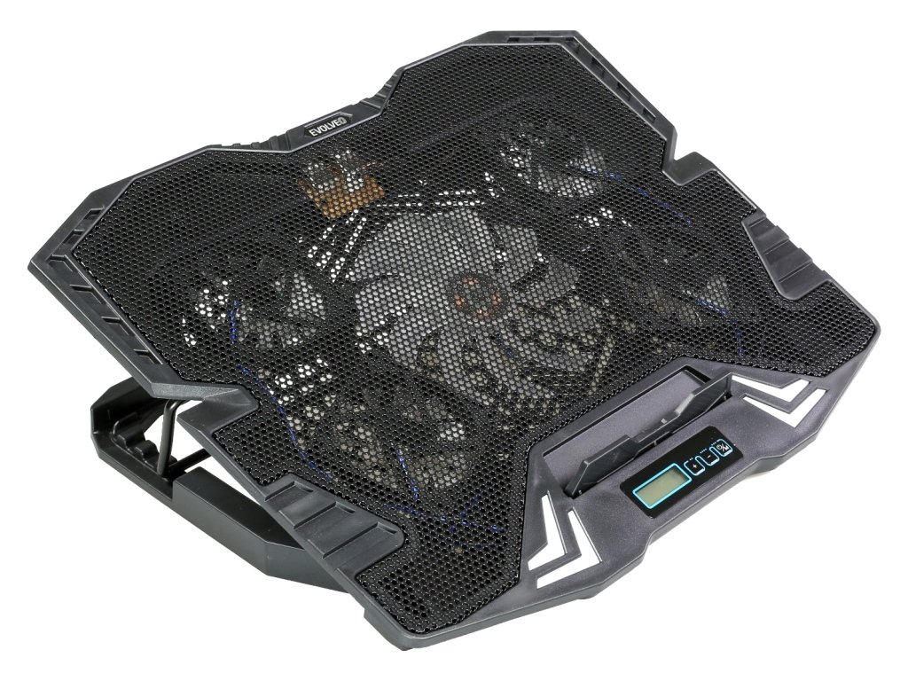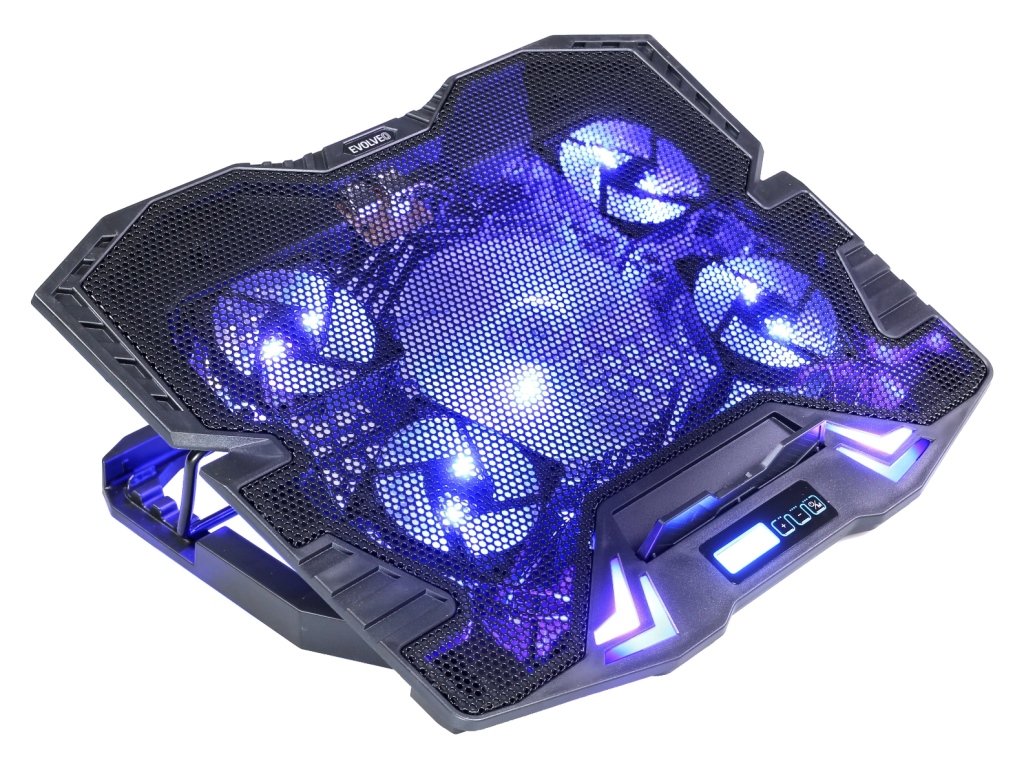 Herní polohovatelný chladící podstavec pro notebooky velikosti 11- 15.6". Regulace rychlosti otáček ventilátoru, displej s ukazatelem rychlosti ventilátorů.Specifikace: