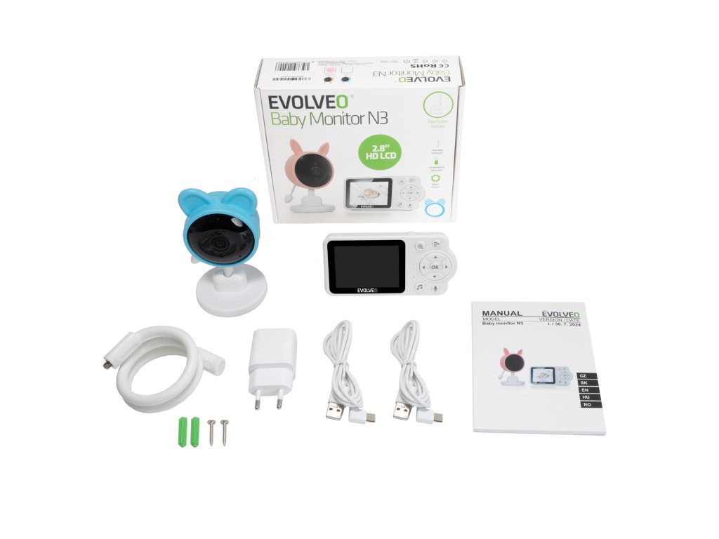 EVOLVEO Baby Monitor N3, dětská videochůvička, modrá