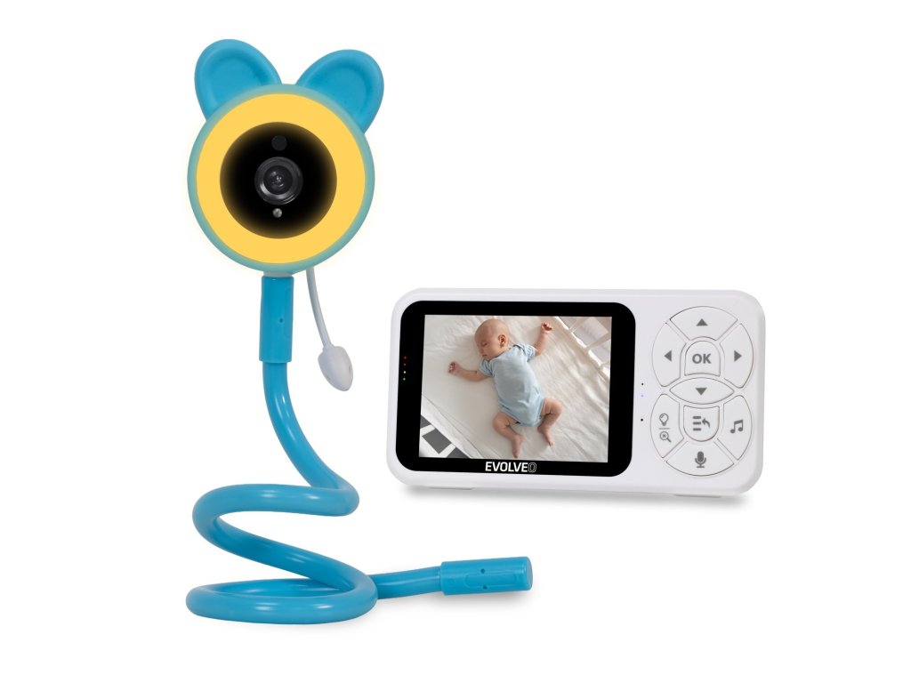 EVOLVEO Baby Monitor N35 – dětská chůvička s kamerou, VOX, teploměr, noční vidění, RGB světlo Modrá