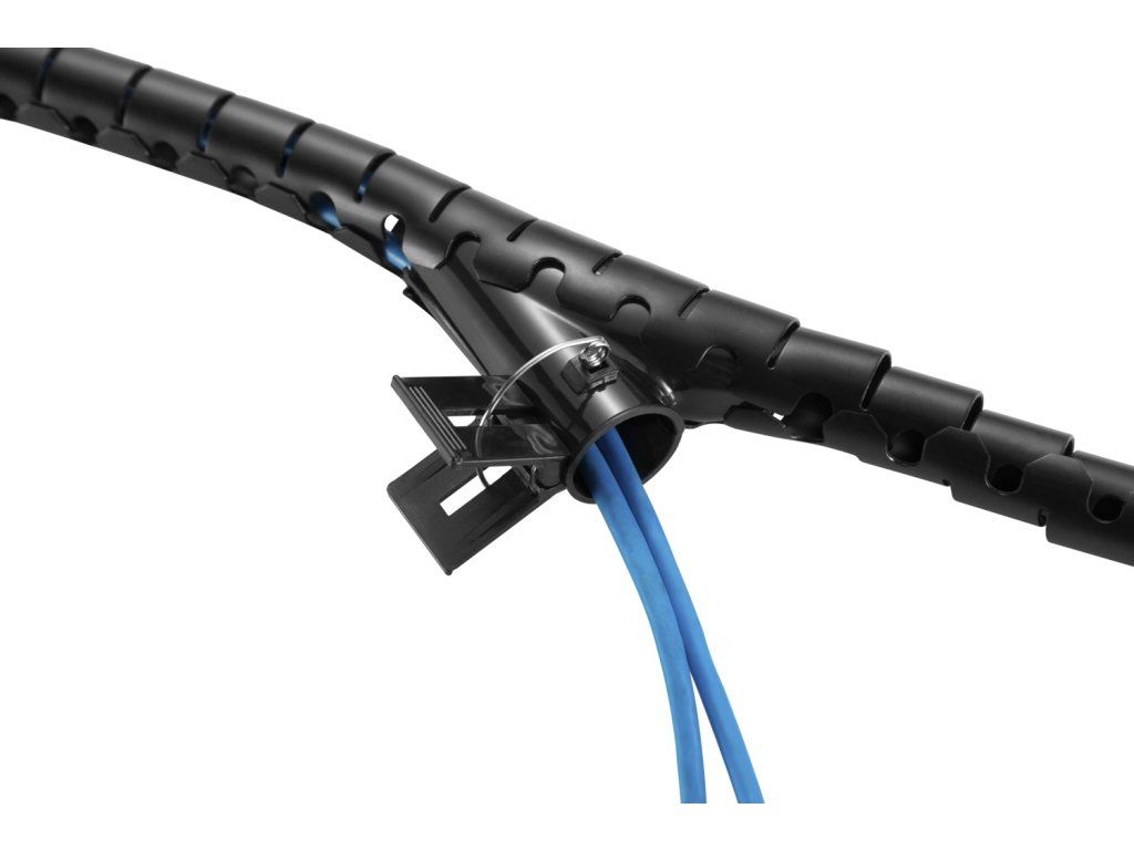 Součástí balení je i praktický instalační klip, který výrazně usnadňuje vložení kabelů do trubice, a to po celé její délce. Jednotlivé kabely navíc můžete z trubice v jakékoliv její části vyvést, takže není problém odbočit k monitoru, tiskárně nebo reprobedně přesně tam, kde potřebujete. Výsledkem je přitom promyšleně vedený svazek, který působí přirozeně a zároveň maximálně organizovaně.
