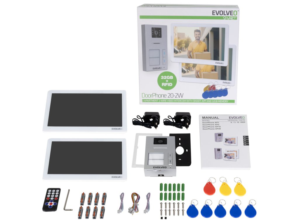 EVOLVEO DoorPhone 20-2W - 2 drátový videotelefon s aplikací pro dvě domácnosti a 32GB pamětí
