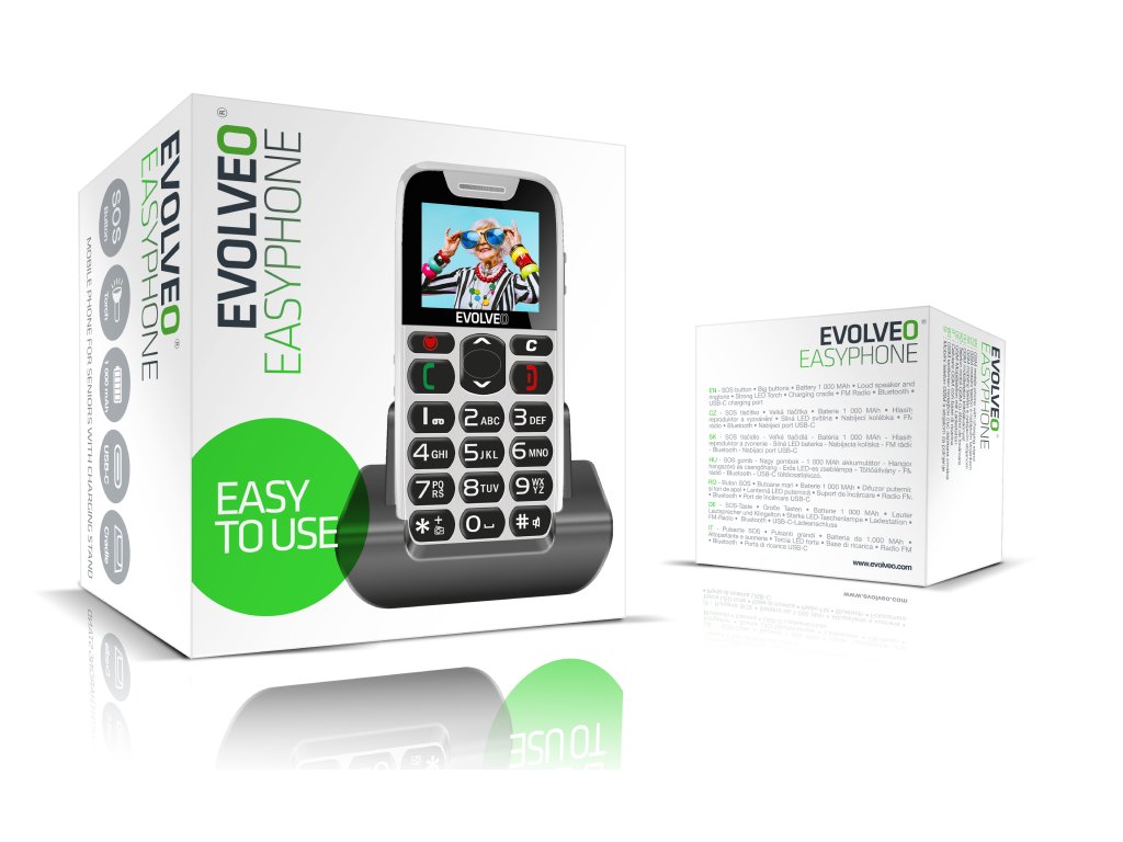 Telefon je dodáván s praktickým nabíjecím stojánkem, který zjednodušuje nabíjení baterie. Stačí telefon zasunout do stojánku a nabíjení se spustí automaticky, což ušetří čas a usnadní každodenní používání telefonu. Kapacita 1000 mAh Li-Ion baterie a výdrž až 8 dní zajistí, že telefon EVOLVEO EasyPhone nezradí, když ho nejvíce potřebujete.