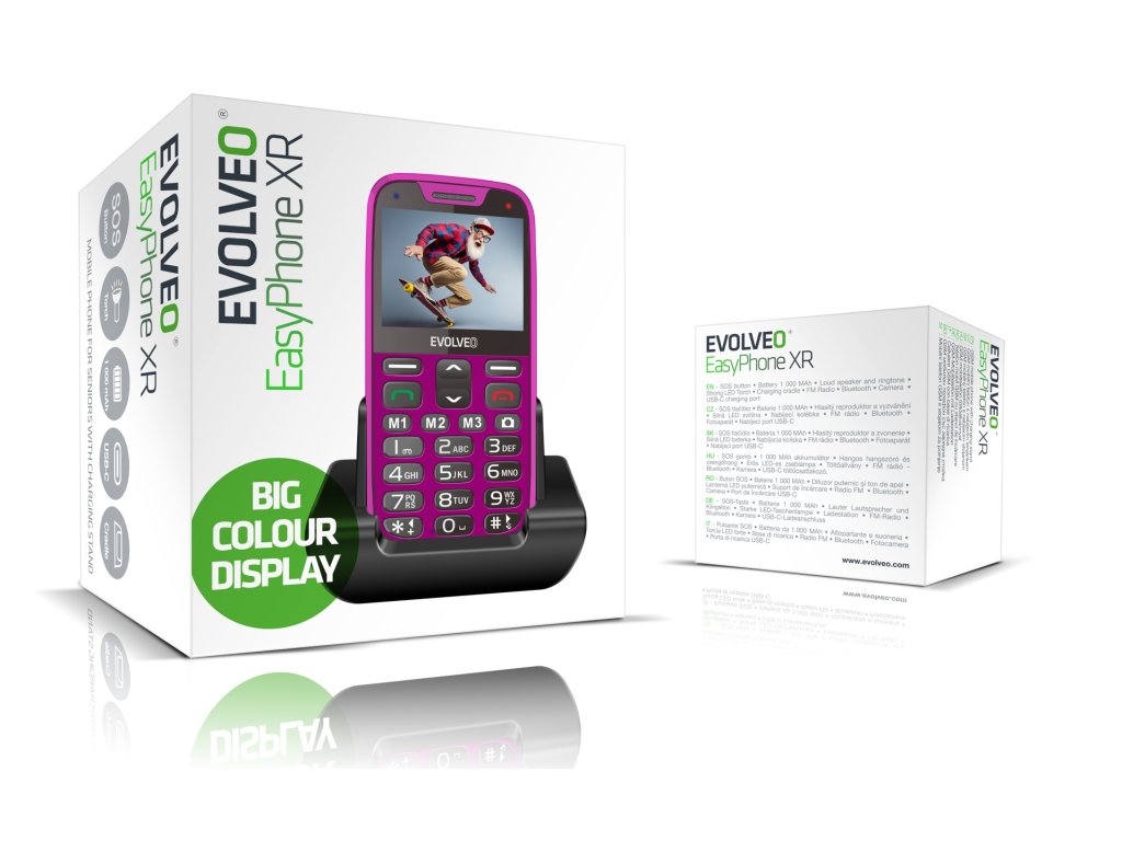 Ovládání mobilního telefonu EVOLVEO EasyPhone XR bylo maximálně zjednodušeno, aby vyhovovalo potřebám seniorů a dětí. Velká čísla a písmena jsou výborně čitelná na velkém barevném 2.3" TFT displeji, což zajišťuje snadnou navigaci a čitelnost informací. Jednotlivá tlačítka klávesnice jsou oddělena, což usnadňuje psaní SMS zpráv a zadávání telefonních čísel. Pro ještě větší pohodlí při používání telefonu jsou k dispozici 3 vyhrazená tlačítka na přední straně telefonu, která umožňují rychlý přístup k důležitým funkcím, jako je fotoaparát.