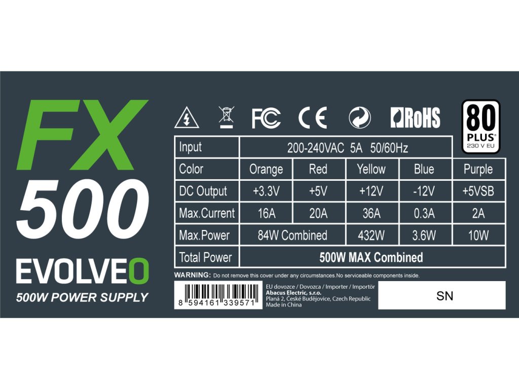 EVOLVEO FX 500,zdroj 500W ATX,14cm,80+,White,3YRW