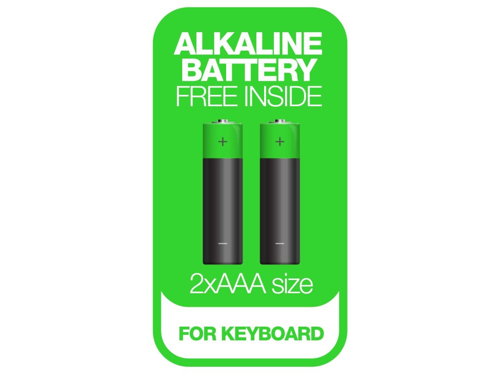 Ke klávesnici a myši jsou rovnou přibalené i kvalitní alkalické baterie, takže můžete jít do akce hned po vybalení setu z krabice. Klávesnice funguje na 2 mikrotužky (AAA), myši dodává šťávu 1 tužková baterie (AA).