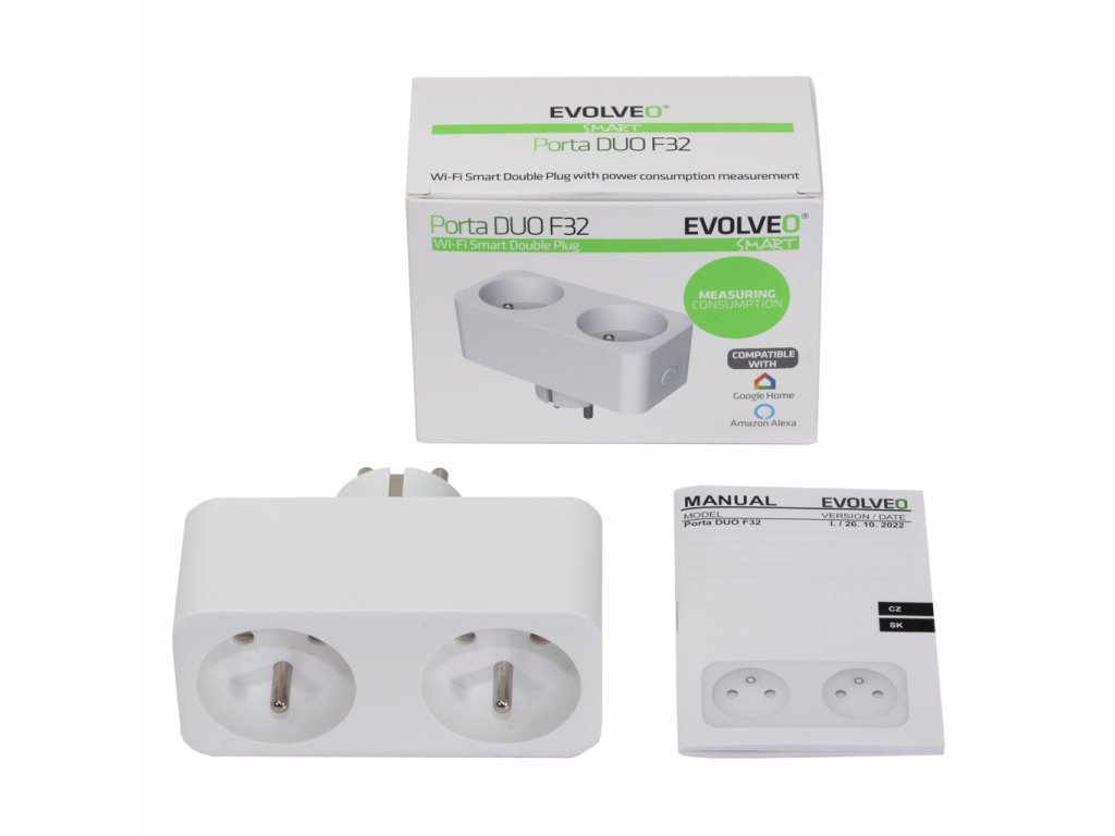 EVOLVEO Porta DUO F32, chytrá Wi-Fi dvojzásuvka s měřením spotřeby