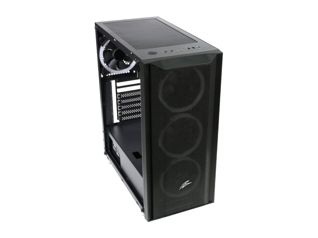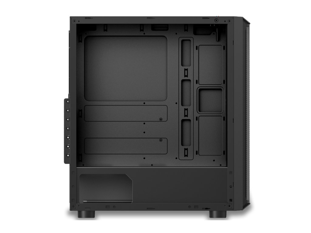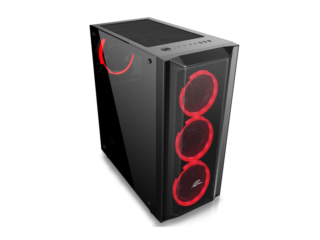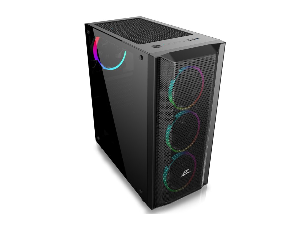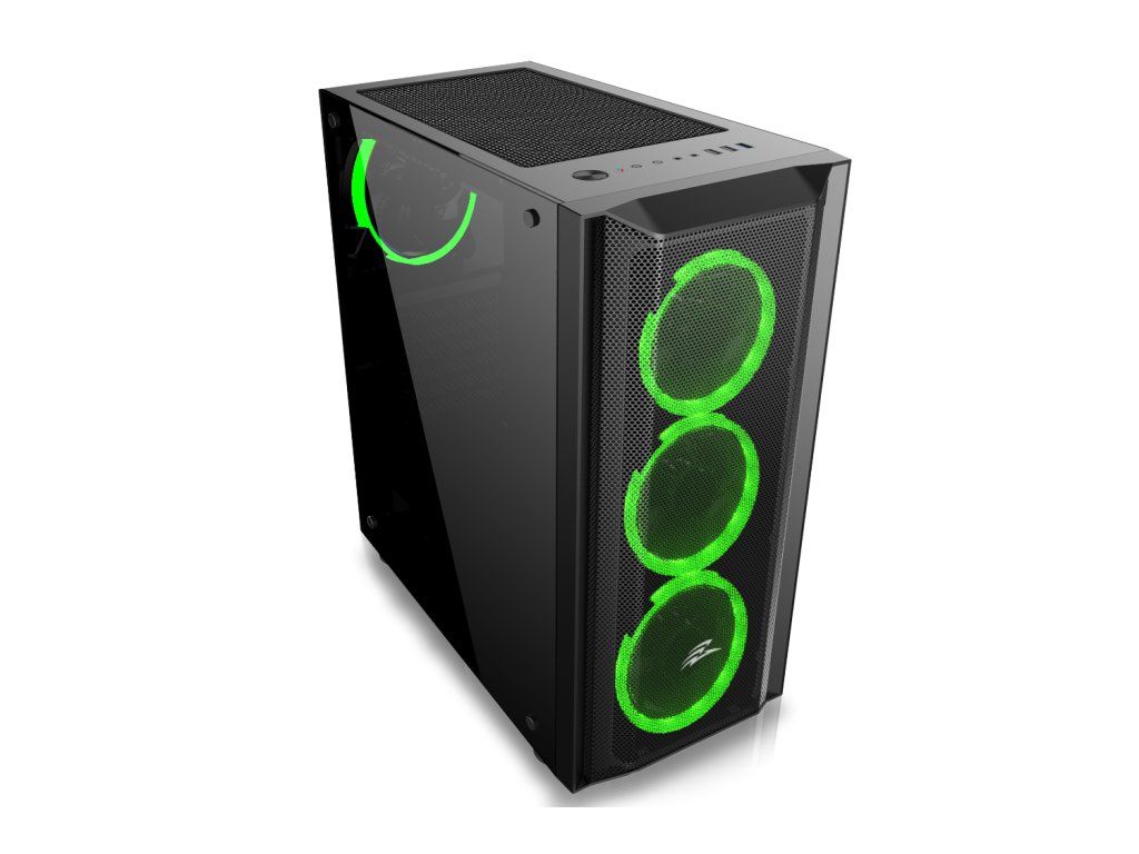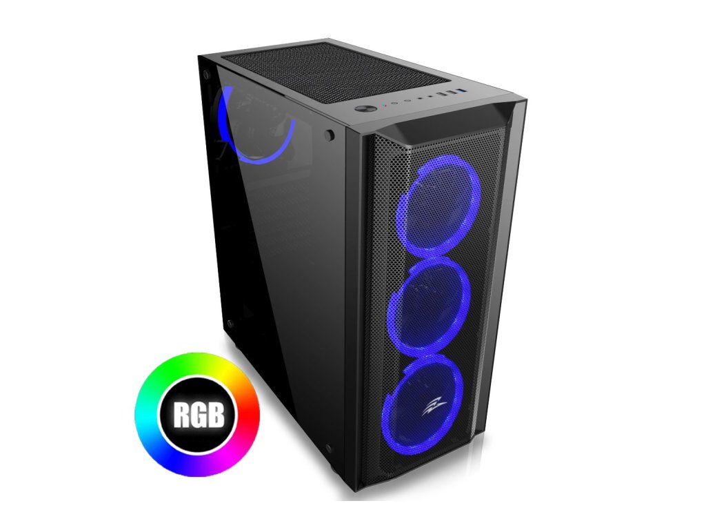 Hení skříň s 4x RGB ventilátoryHerní ATX midi tower s instalovanými 4x RGB rainbow 120 mm ventilátory, které se ovládájí pomocí LED tlačítka na horní straně ovládacího panelu. Čelní mřížka přes celý přední kryt zajišťuje efektivní proudění vzduch. Levá strana skříně obsahuje bočnici z tvrzeného skla. Skříň je určená pro základní desky podporující platformu Intel i AMD. Mimo formátu ATX je kompatibilní i s formátem Micro ATXa Mini ITX. Napájecí zdroj se umísťuje do dolní části skříně. Spodní mřížka je osazena vysouvacím prachovým filtrem, horní prachový filter je uchycený magnety a