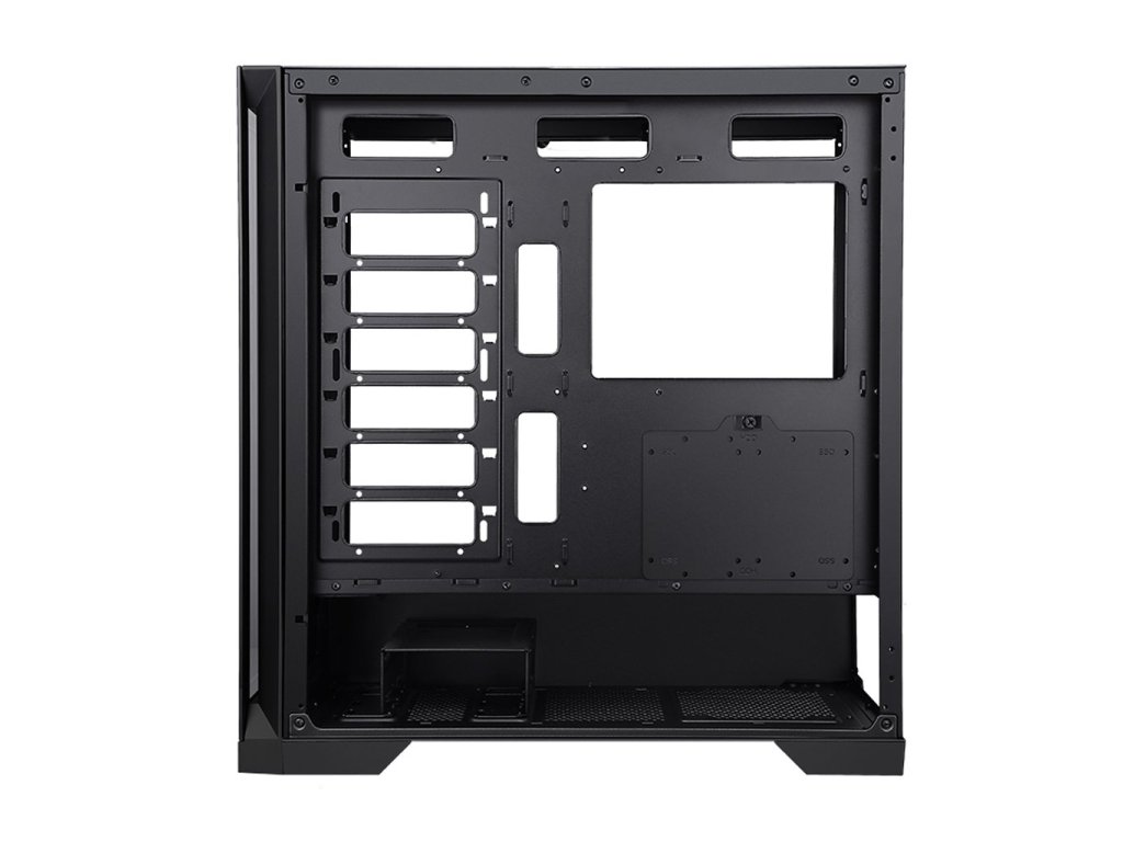 Levá strana PC skříně obsahuje bočnici z tvrzeného skla. Skříň je určená pro základní desky podporující platformu Intel i AMD. Mimo formátu ATX je kompatibilní i s formátem Micro ATXa Mini ITX. Napájecí zdroj se umísťuje do dolní části skříně. Spodní mřížka je osazena vysouvacím prachovým filtrem, horní prachový filtr je uchycený magnety a je odnímatelný. Ventilátory mají 4pin s MOLEX konektory a připojují se vzájemně na sebe bez nutnosti jakéhokoliv řadiče. Ovládání ventilátorů je možné pouze pomocí LED tlačítka na kontrolním panelu skříně.
