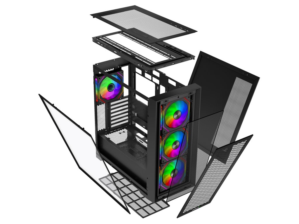 • Předinstalované ventilátory ve skříni: 1x ARGB master, 3x ARGB slave