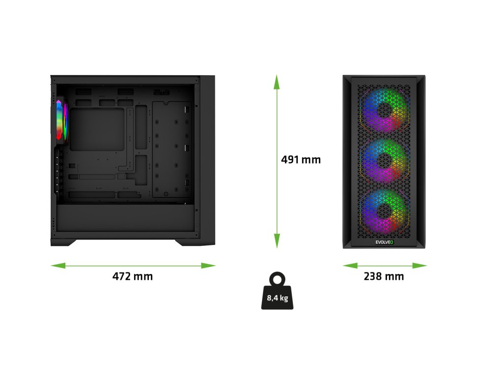EVOLVEO Rhino, eATX/ATX/4x ARGB/bočnice sklo/mesh