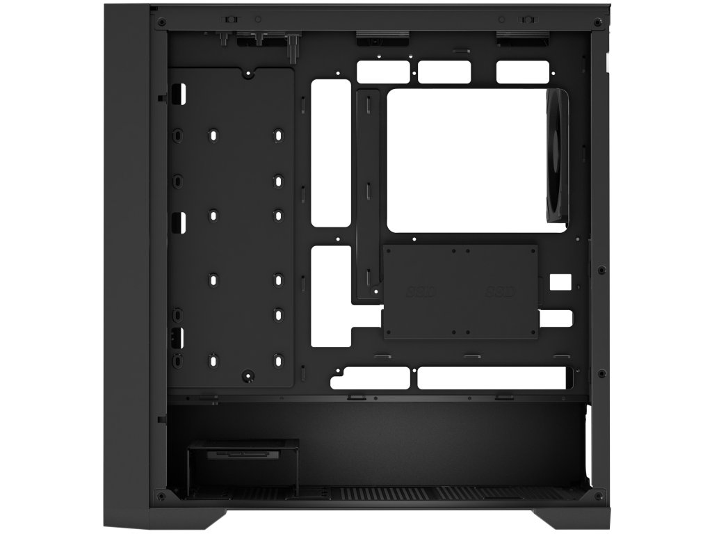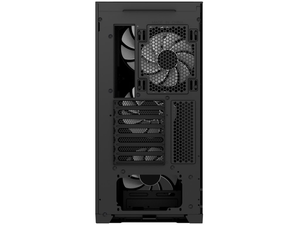 Průtok vzduchu podporuje i boční průduch na pravé straně skříně a odnímatelná perforovaná část horní strany. Ta je navíc doplněná o pevnou část se speciálně tvarovaným profilem pro lepší ochranu případného vodního chlazení.