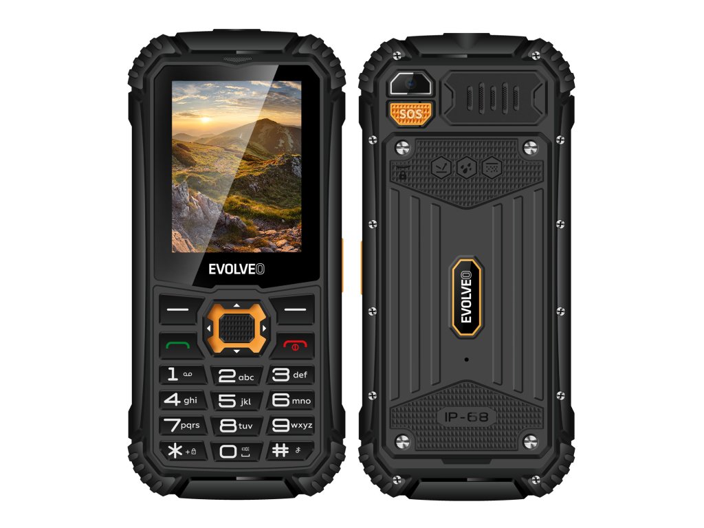 • EVOLVEO StrongPhone Q1, vodotěsný odolný Dual SIM telefon, černo-oranžový (PartNo: SGP-Q1-BO)