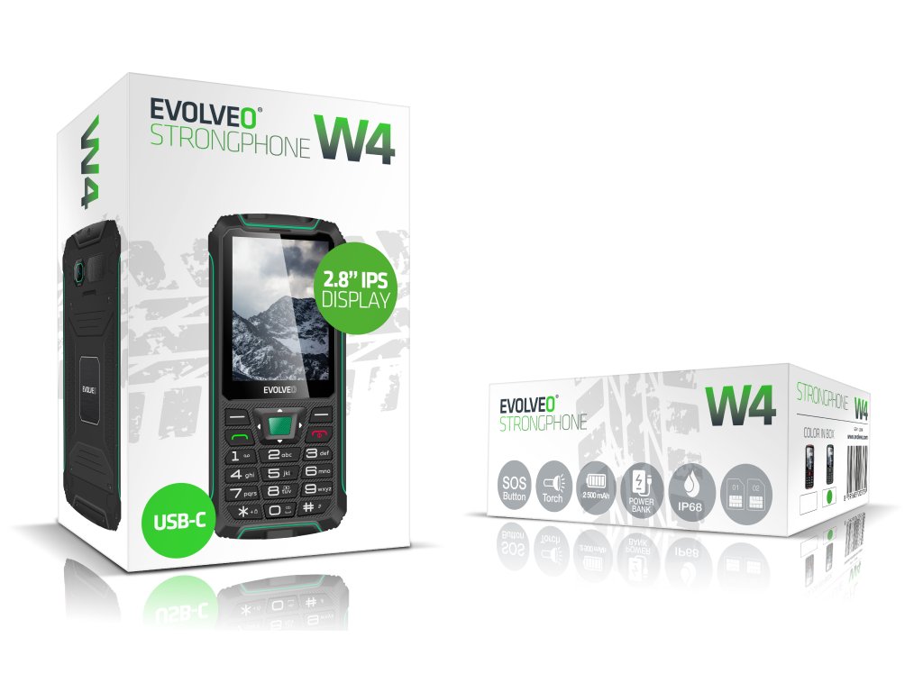 • EVOLVEO StrongPhone W4, vodotěsný odolný Dual SIM telefon, černo-zelený (PartNo: SGP-W4-BG)