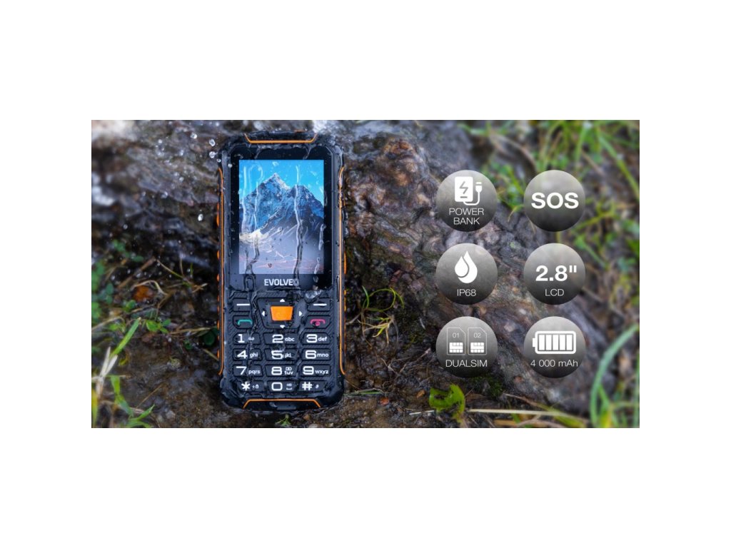 EVOLVEO StrongPhone Z6, vodotěsný odolný Dual SIM telefon, černo-oranžová
