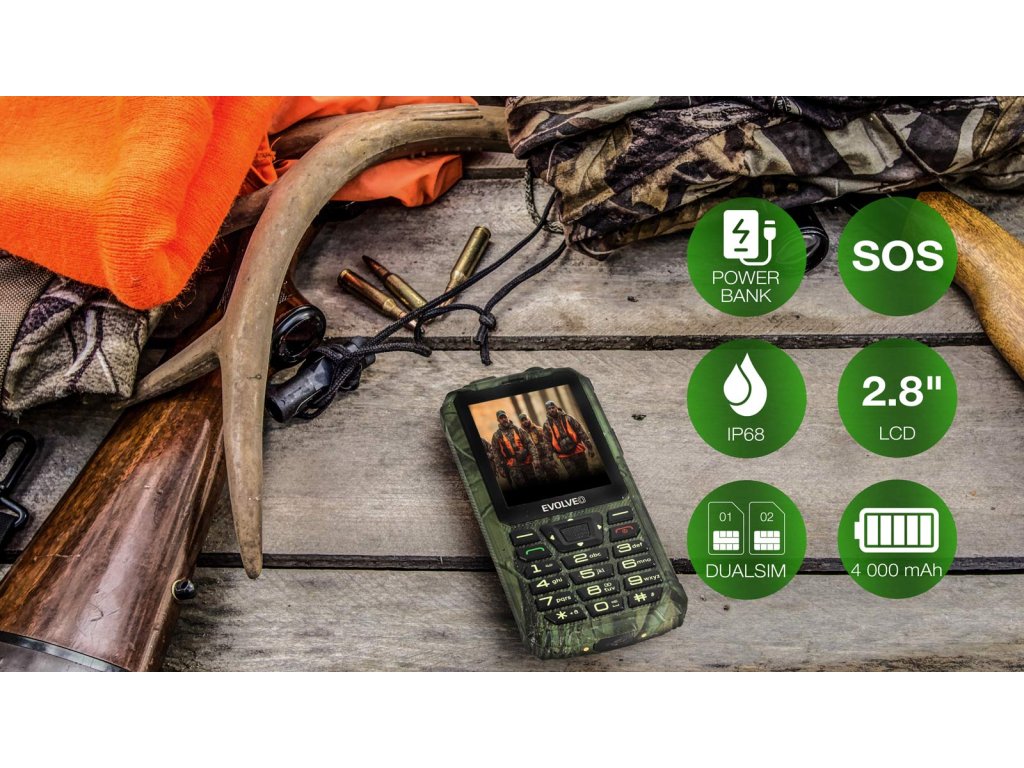 EVOLVEO StrongPhone Z6, vodotěsný odolný Dual SIM telefon, lovecká kamufláž