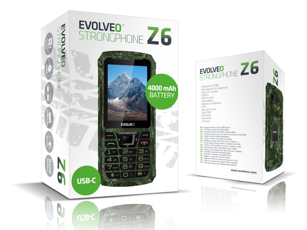 StrongPhone Z6 je telefon s opravdu extrémní výdrží. A to nejen kvůli svému odolnému tělu s vodotěsností dle IP68, které odolá pádům, vodě, blátu nebo sněhu, ale hlavně díky velké 4 000 mAh baterii. To vše je doplněno o velký 2,8“ displej, funkci powerbanky, SOS tlačítko a mnoho dalších výhod, které tento model nabízí.