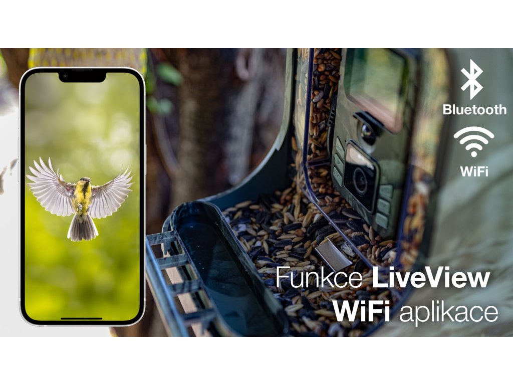 EVOLVEO BirdFeeder přináší revoluci do světa pozorování ptáků díky svému chytrému designu a možnostem připojení. S integrovanou WiFi se můžete snadno připojit ke krmítku pomocí mobilní aplikace EVOLVEO WiFi, a to až na vzdálenost 20 metrů. Tato aplikace umožňuje snadné ovládání všech funkcí krmítka, včetně nastavení kamery a sledování živého přenosu. Kromě toho je krmítko vybaveno profesionální fotopastí, která umožňuje pořizovat vysoce kvalitní snímky a videa. Díky tomu můžete zaznamenat každý okamžik, kdy se ptáci přiblíží ke krmítku, ať už během dne nebo noci.