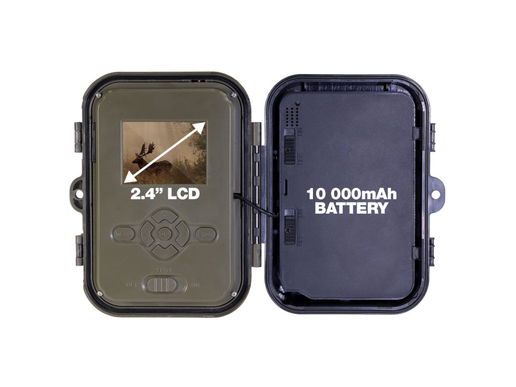 Jeden z důležitých parametrů každé fotopasti je její výdrž na baterii a zároveň i ekonomika provozu, díky nabíjecí 10 000 mAh baterii získáte zařízení s dlouhou výdrží na jedno nabití. Baterie je přímo vybavena nabíjecím konektorem a indikační LED diodou informující o stavu nabíjení.Akumulátor je dokoupitelný jako příslušenství, takže není problém používat dvě baterie, a jednou za několik měsíců jen vybitou baterii v kameře vyměnit za čerstvě nabitou. Samozřejmě že výdrž se může lišit při různých nastaveních (častý záznam videa) a také vlivem okolní teploty, kdy při teplotách bod bodem mrazu výdrž klesá.