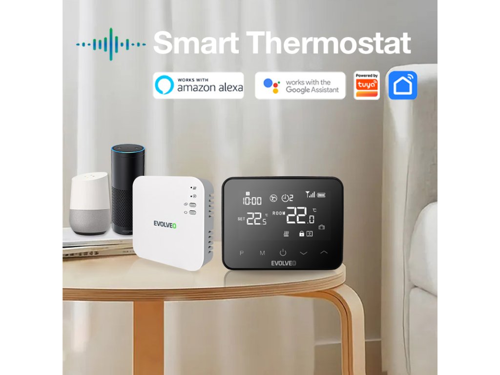 Termostat Thermal je navržen tak, aby byl snadno instalovatelný a kompatibilní s různými topnými systémy. S dodanými montážními součástkami a návodem k instalaci lze termostat snadno namontovat na stěnu nebo umístit na stůl podle potřeb. Jeho kompatibilita s hlasovými asistenty Google Assistant, Amazon Alexa umožní ovládat teplotu v domácnosti hlasovými příkazy.