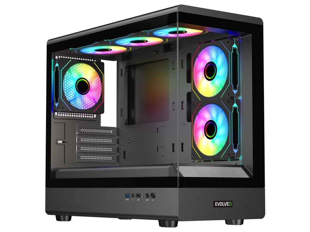 EVOLVEO Ursus, skříň mATX, 6x ARGB ventilátor 120mm, skleněná bočnice + přední panel