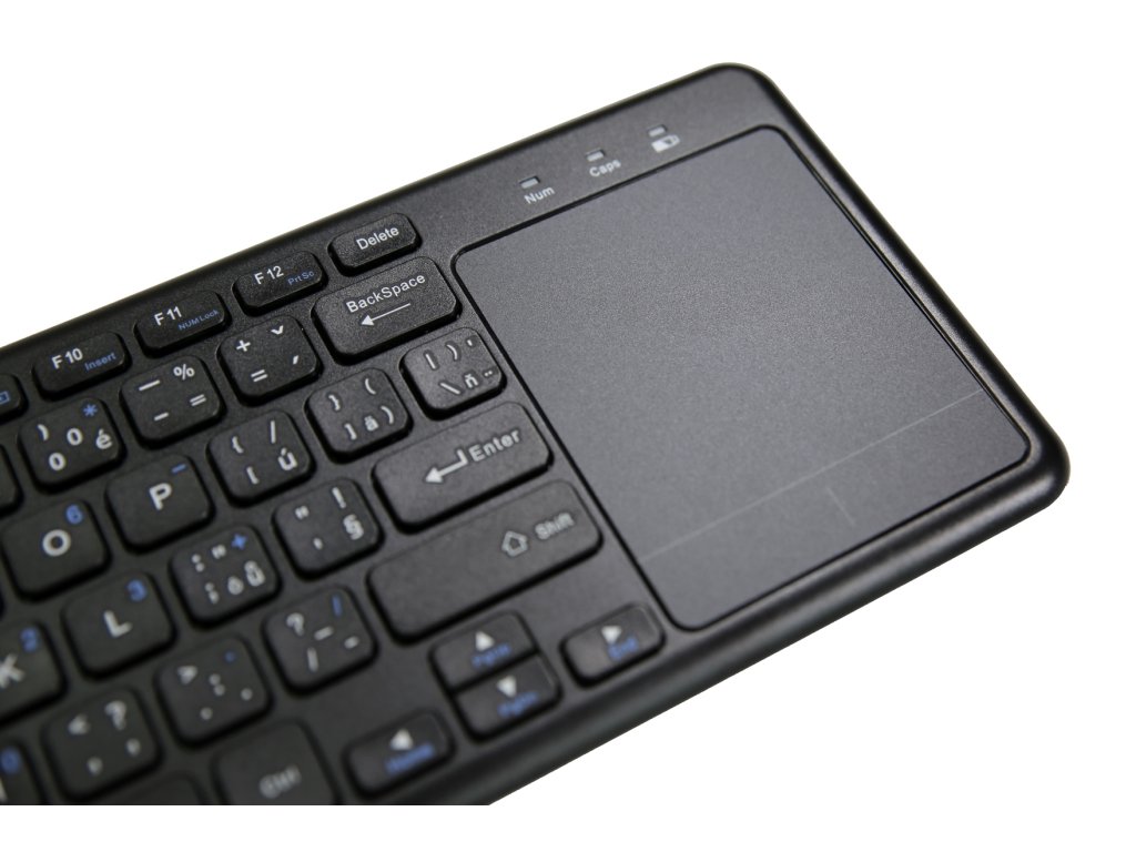 Všestranná 2.4GHz bezdrátová klávesnice s Touchpadem. Ideální pro ovládání Smart televizí, multimediálních center, HTPC počítačů, apod. Můžete také použít s notebookem nebo klasickým PC, pokud chcete dálkově ovládat svůj počítač.Tenké provedení a nízká váha pro snadnou mobilitu.