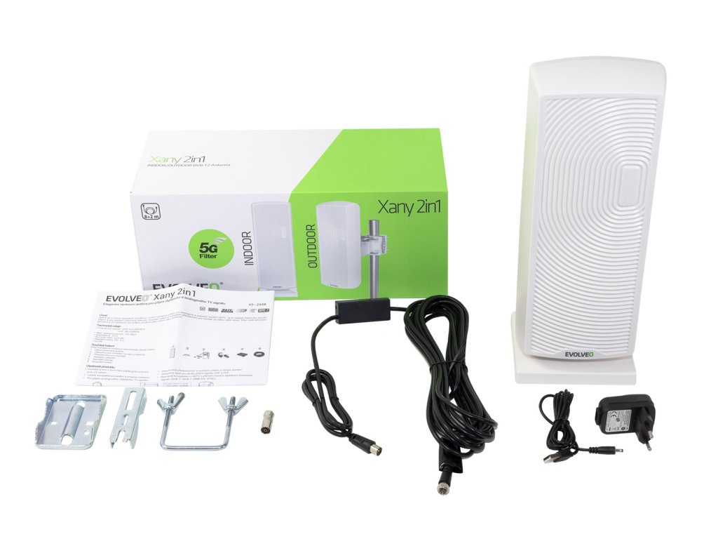 EVOLVEO Xany 2in1, aktivní venkovní/pokojová anténa FM/DAB+/DVB-T2, filtr LTE,4G,5G