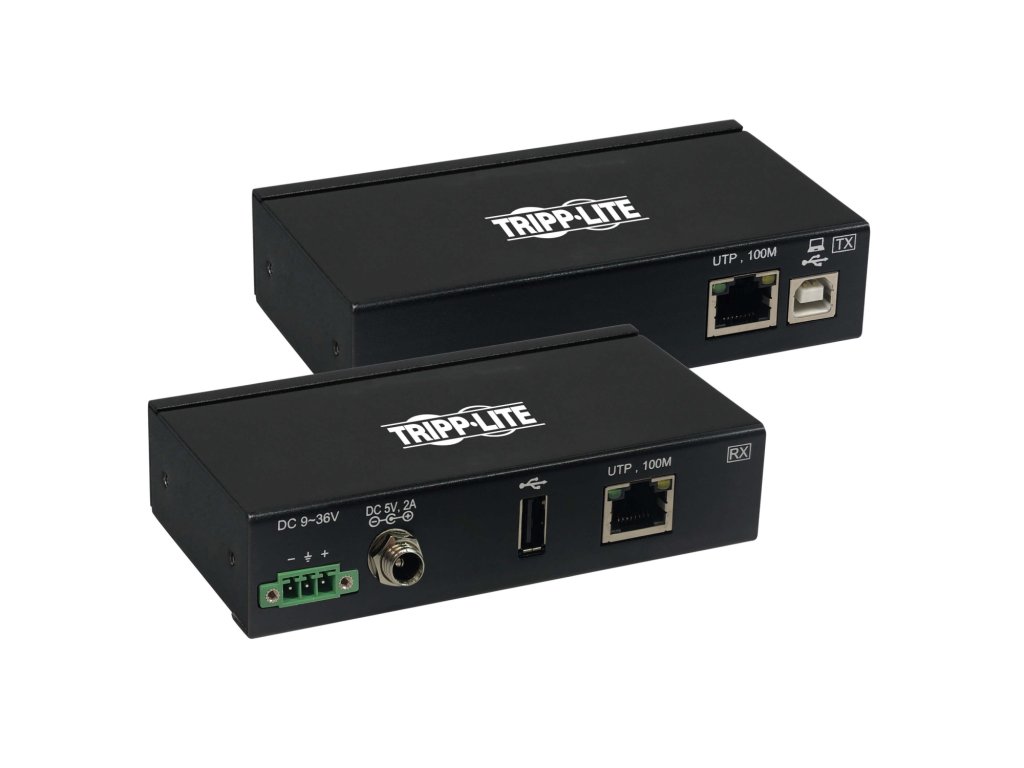 1-Port Industrial USB over Cat6 Extender, ESD Protection, PoC - USB 2.0, Mountable, 330 ft., TAAKombinace vysílače a přijímače průmyslové třídy umožňuje připojit kancelářský notebook nebo počítač k webové kameře nebo jinému perifernímu zařízení USB až do vzdálenosti 330 stop.
