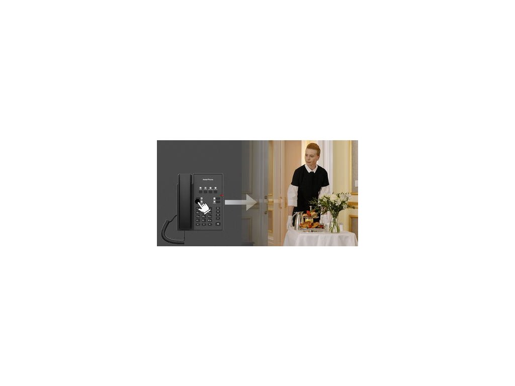 H1 má 8 programovatelných tlačítek pro servisní hotlinky například hlasová zprávy, Recepce, Asistent manažera a pokojová služba a další hotelové služby jako SPA, buzení, restaurant a emergency, atd. Díky možnosti instalace na stůl v 45° a 50° úhlu a možnosti zavěšení na zeď může vyhovovat potřebám různých kancelářských prostředí.