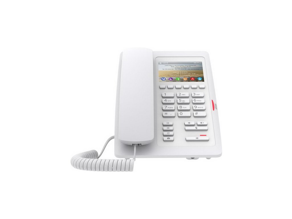 Fanvil H5 skvělou a dostupnou volbou pro hotelové IP telefony. S 3,5 palcovým barevným displejem je to také uživatelsky přívětivý hotelový telefon. Hotel může upravit informace (jako je adresa hotelu, logo, související telefonní čísla atd.) na obrazovce a přinést hotelovým hostům lepší informovanost. Kromě elegantního vzhledu je také vybaven všemi dúležitými funkcemi, hot tlačítka pro servisní linku, rychlé volby, hlasovou schránku atd.Fanvil H5 je IP telefon navržen pro hotely. Svým stylovým, svěžím vzhledem, vynikající kvalitou hlasu a odpovídající integrovanou komunikační platformou a 6 programovatelnými soft tlačítky je idealním řešením.