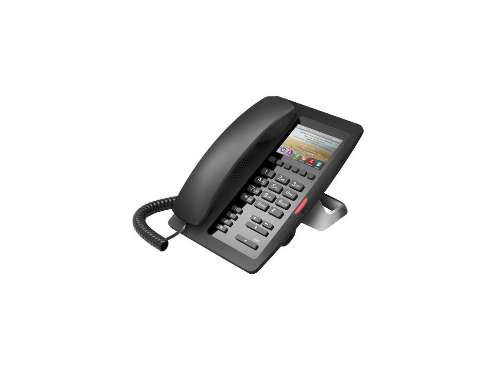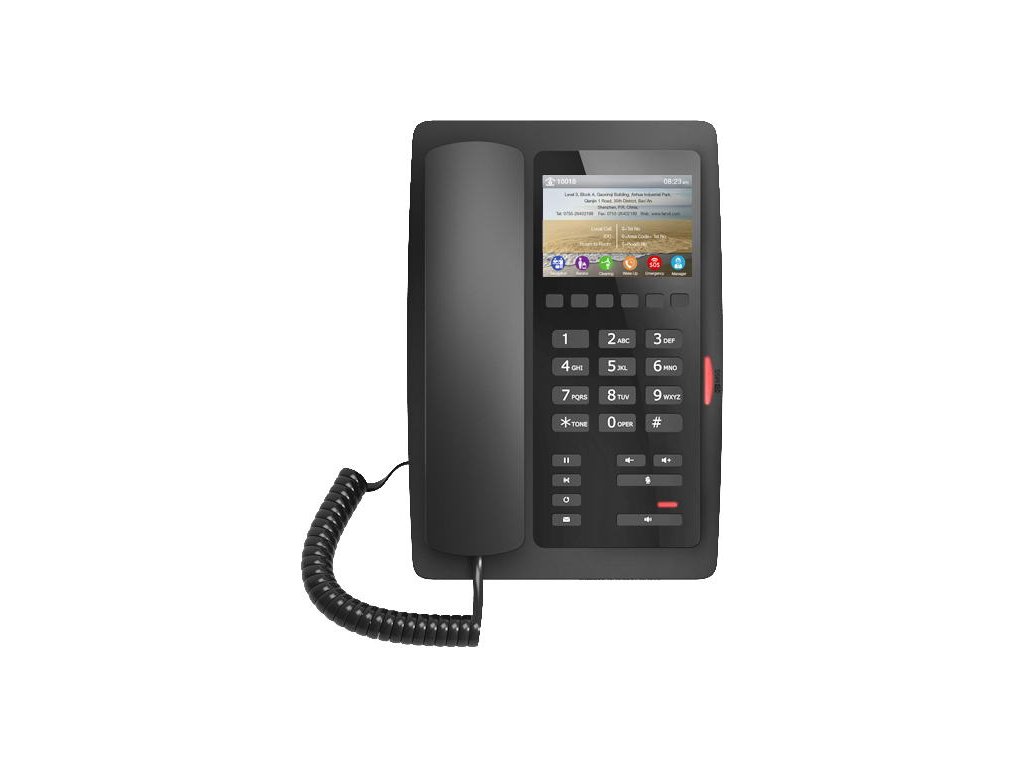 Fanvil H5 skvělou a dostupnou volbou pro hotelové IP telefony. S 3,5 palcovým barevným displejem je to také uživatelsky přívětivý hotelový telefon. Hotel může upravit informace (jako je adresa hotelu, logo, související telefonní čísla atd.) na obrazovce a přinést hotelovým hostům lepší informovanost. Kromě elegantního vzhledu je také vybaven všemi dúležitými funkcemi, hot tlačítka pro servisní linku, rychlé volby, hlasovou schránku atd.Fanvil H5 je IP telefon navržen pro hotely. Svým stylovým, svěžím vzhledem, vynikající kvalitou hlasu a odpovídající integrovanou komunikační platformou a 6 programovatelnými soft tlačítky je idealním řešením.
