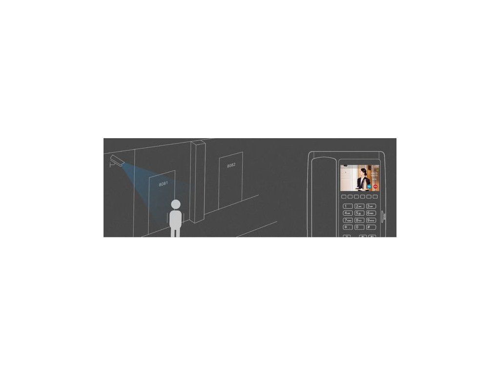 Když je Fanvil H5W propojen se SIP dveřními telefony, interkomy nebo kamerou u dveří, umožňuje vám předem zobrazit video obraz návštěvníků a dosáhnout vzdáleného odemknutí dveří.