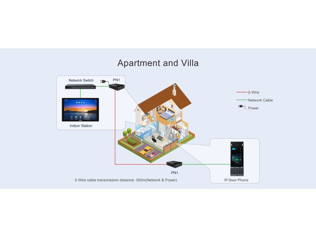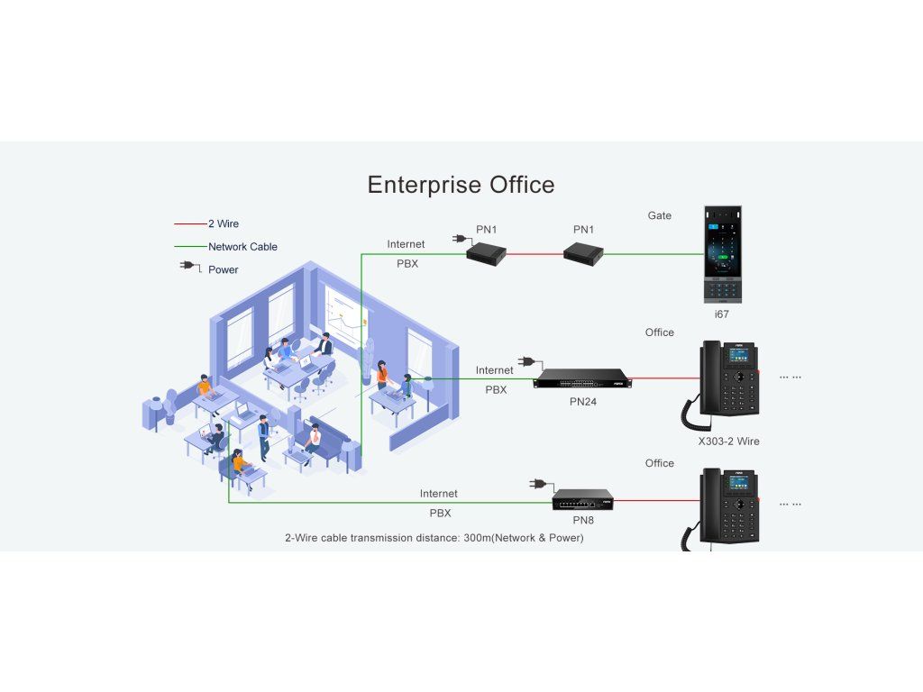 Fanvil PN1 je 2drátový konvertor s jedinečným designem, který usnadňuje opětovné použití stávajících vodičů. Nevyžaduje žádnou těžkopádnou instalaci nebo kabeláž, stačí jej zapojit a je připraven k použití. To nejen šetří čas na instalaci, ale také výrazně snižuje celkové náklady na kabeláž. Tato inovativní funkce dělá z PN1 ideální volbu pro rychlé a efektivní nasazení ve stávající infrastruktuře a poskytuje uživatelům pohodlnější a cenově výhodnější prostředí.- Použití 2-Wire pro připojení libovolného IP zařízení s podporou PoE