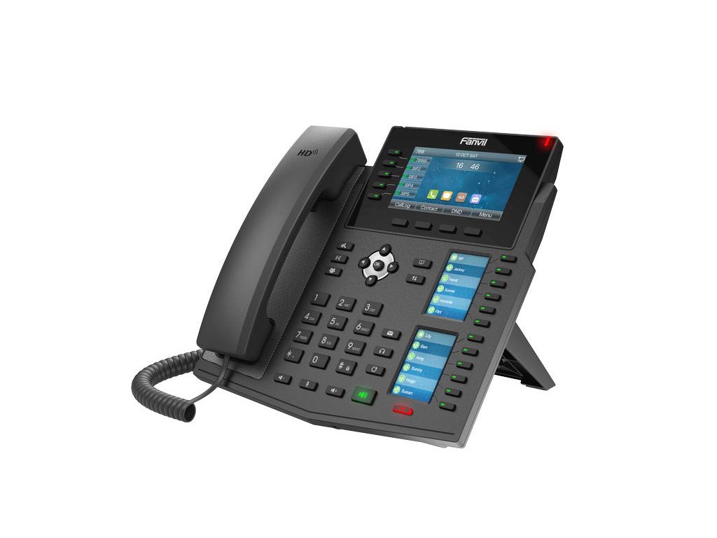 Špičkový IP telefon Fanvil X6U se třemi barevnými displeji, s 6 linkovými tlačítky s LED indikátorem a vestavěným Bluetooth poskytuje přímý přístup k instrukcím s cílem nabídnout větší flexibilitu a produktivitu, aby splnil vysoké požadavky firem. Reproduktor Harman a širokopásmový kodek G.722 a Opus v tomto zařízení vám poskytují pohlcující HD audio zážitek při různé kvalitě sítě.Díky intuitivnějšímu designu s 4,3“ barevným LCD 480x272 s 5 linkovými tlačítky s LED indikací, dvěma 2,4“ bočními barevnými LCD s 12 dvoubarevnými fyzických tlačítky, umožňuje Fanvil X6U uživatelsky přívětivější přizpůsobení funkcí.