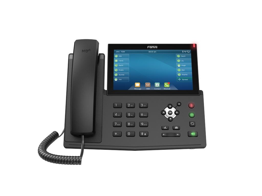 S moderním a jasným designem je Fanvil X7 špičkový podnikový IP telefon pro firemní uživatele, kteří potřebují okamžitý přístup ke všem důležitým informacím. Kromě 7“ kapacitního dotykového displeje s až 127 DSS tlačítky, nabízí také 20 SIP linek, HD audio s podporou Opus kodeku, vestavěný Bluetooth, Wi-Fi připojení a další.7" barevný dotykový displej telefonu nabízí pohodlný přístup ke všem klíčovým informacím na dosah ruky. Na velkém dotykovém displeji je uživatelům na čtyřech stránkách k dispozici celkem až 127 DSS tlačítek. Každému tlačítku lze individuálně nakonfigurovat rychlou volbu, přesměrování, BLF, funkci broadcasting atd.